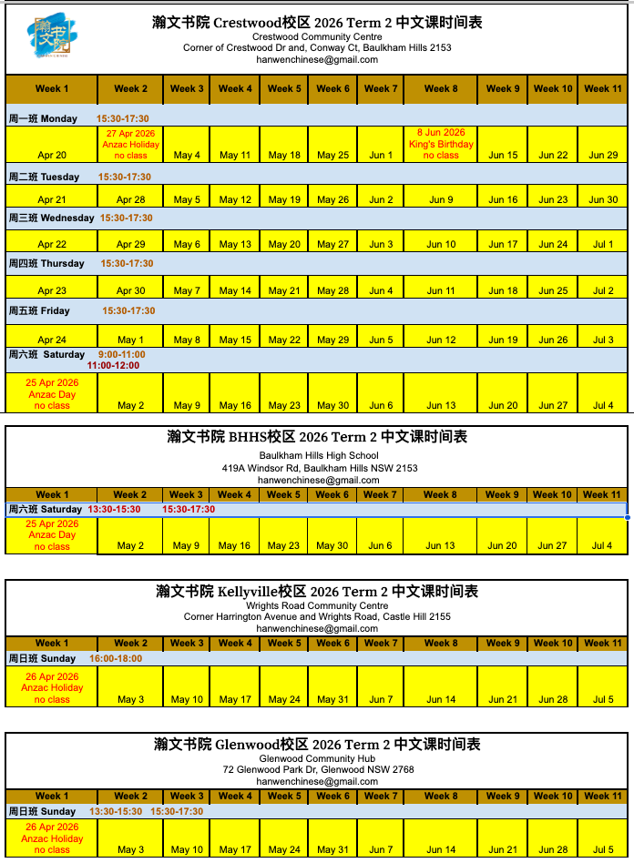 For enrollment into any and all classes, please contact our admin through hanwenchinese@gmail.com